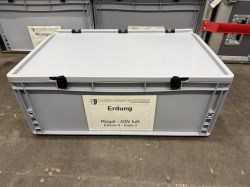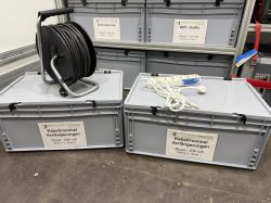 Auf unserm GW IuK ist immer der Rollcontainer TEL verlastet. Auf diesem führen wir alle Arbeitsmaterialen zum einrichten einer Technischen Einsatzleitung mit, in zwölf Kisten ist vom Bleistift bis zum Notebook alles sicher verstaut.