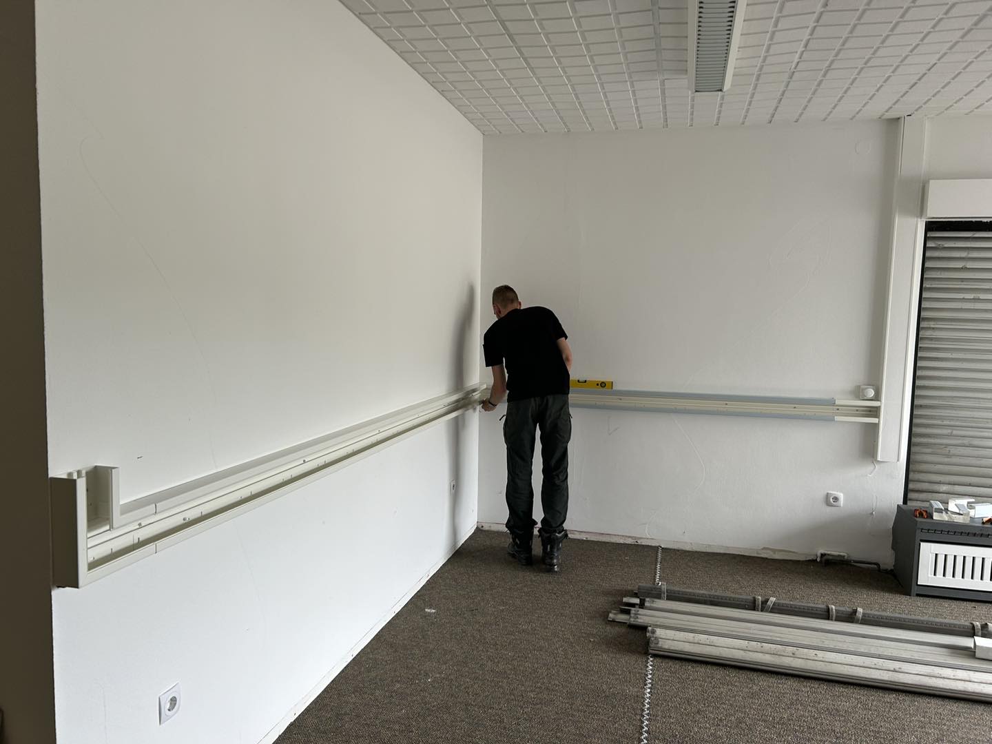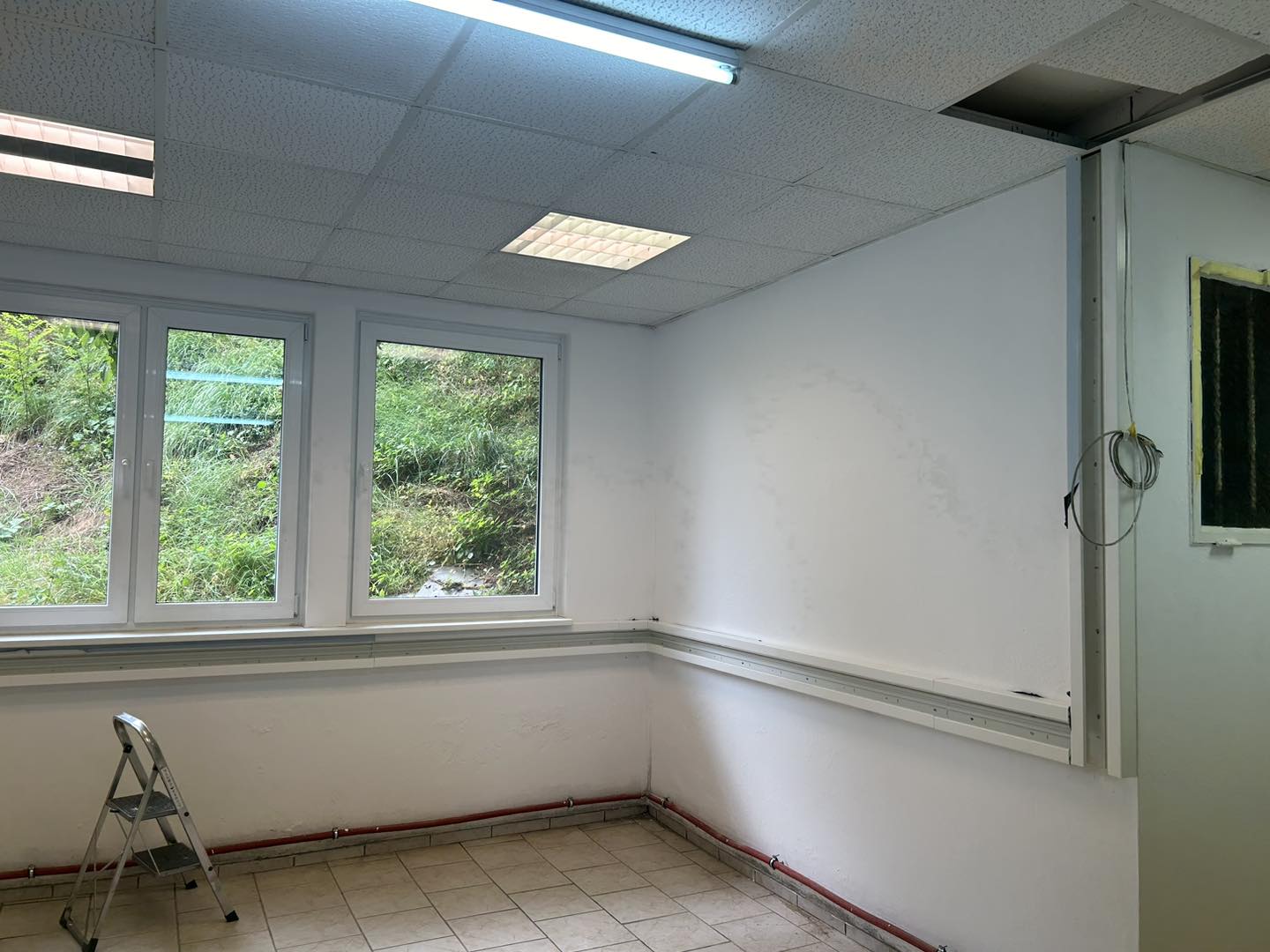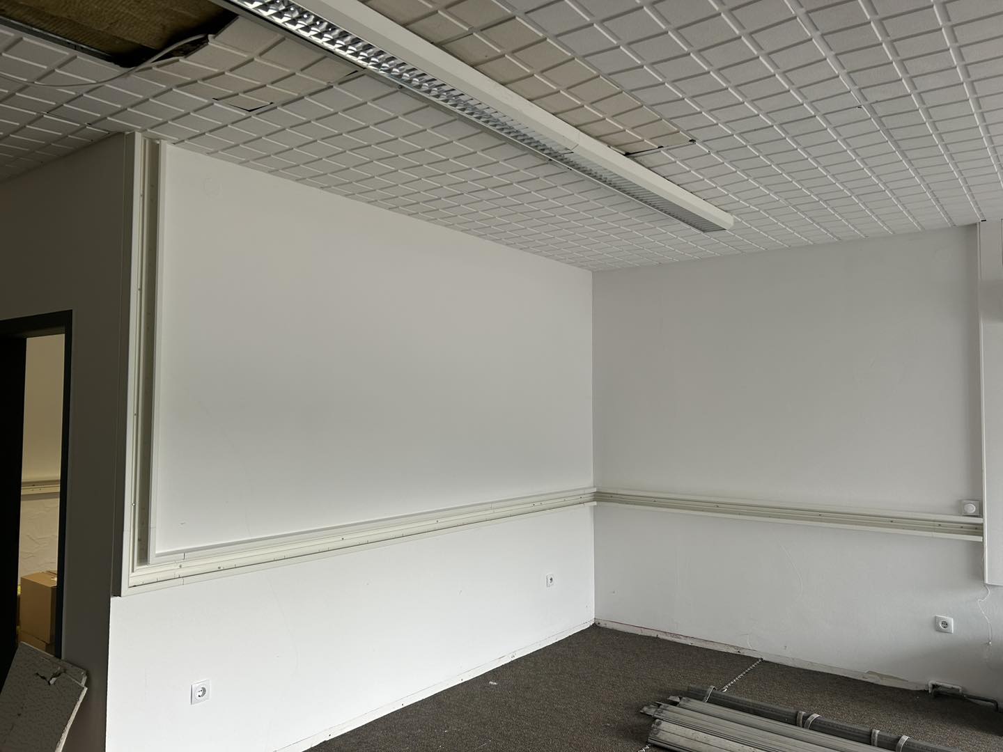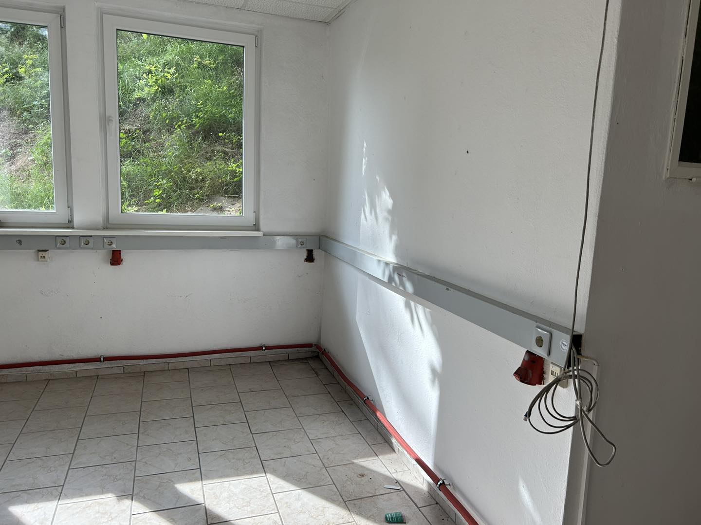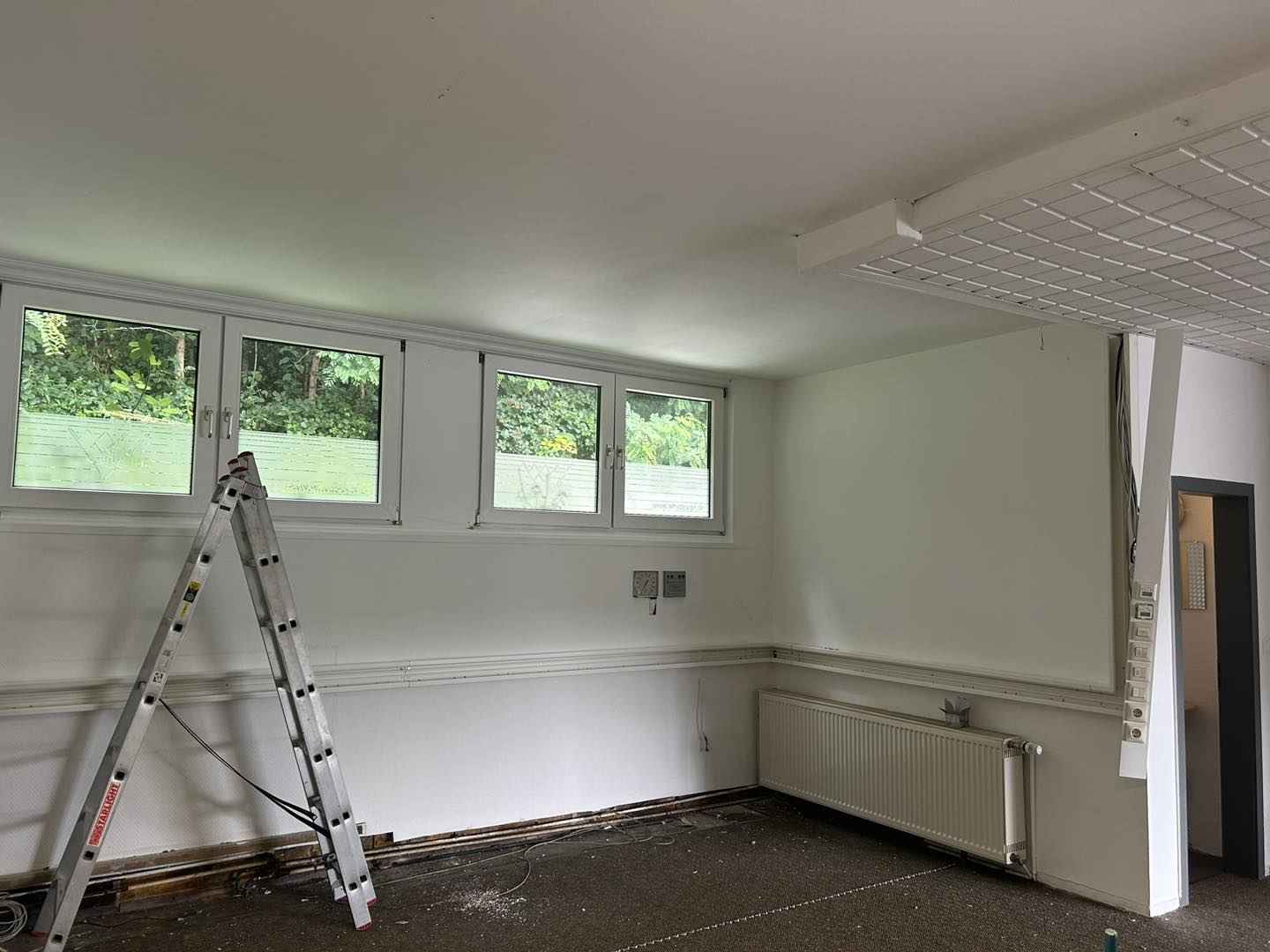 An unseren neuen Standort haben die ersten Arbeiten begonnen. Alte Kabelkanäle, Schalter und Steckdosen wurden demontiert.