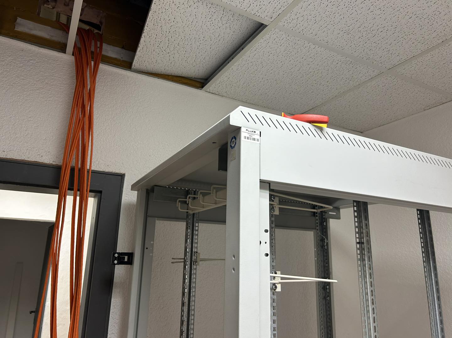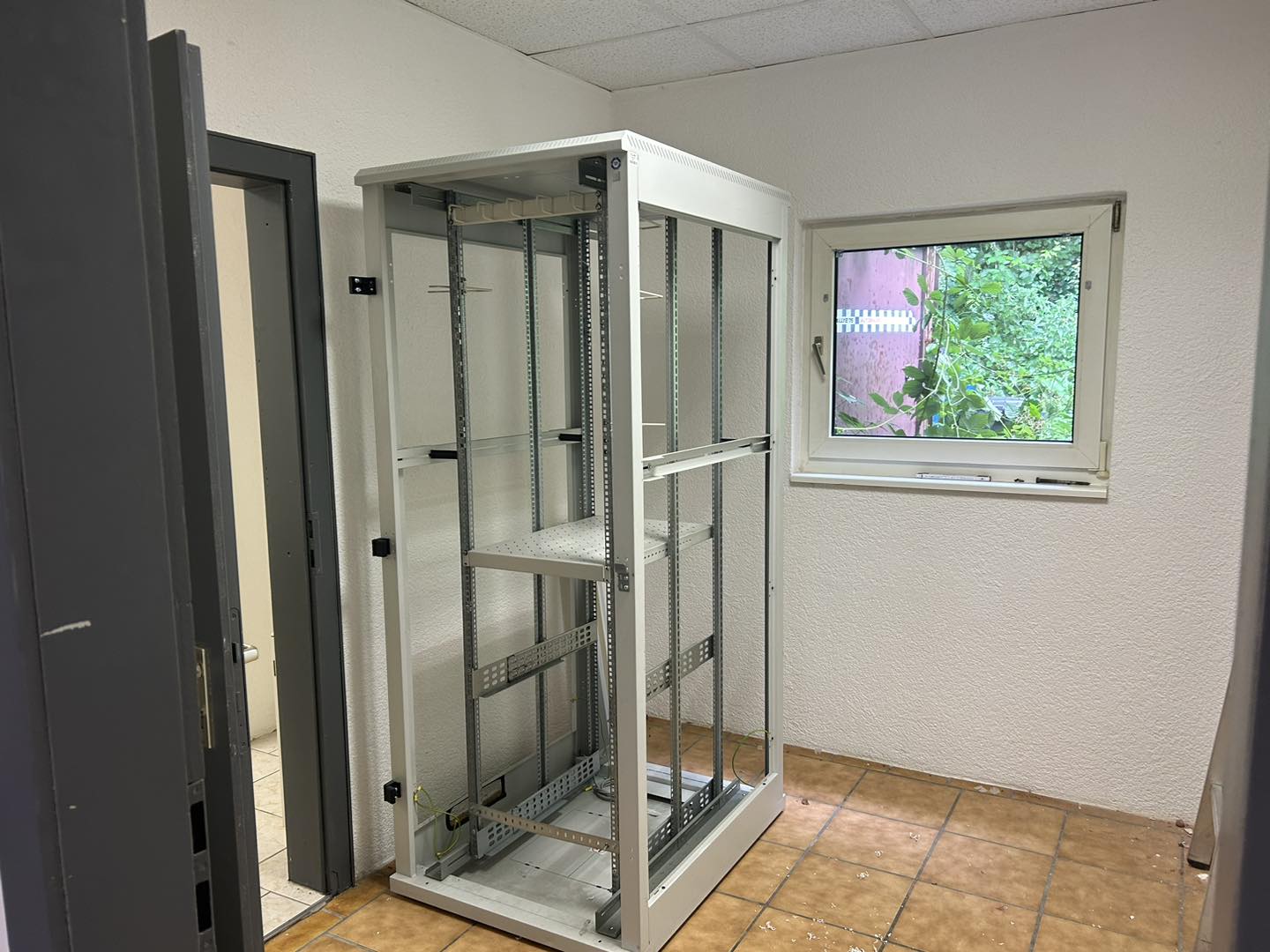 Der Netzwerkschrank wurde an seinen Platz im Serverraum montiert.