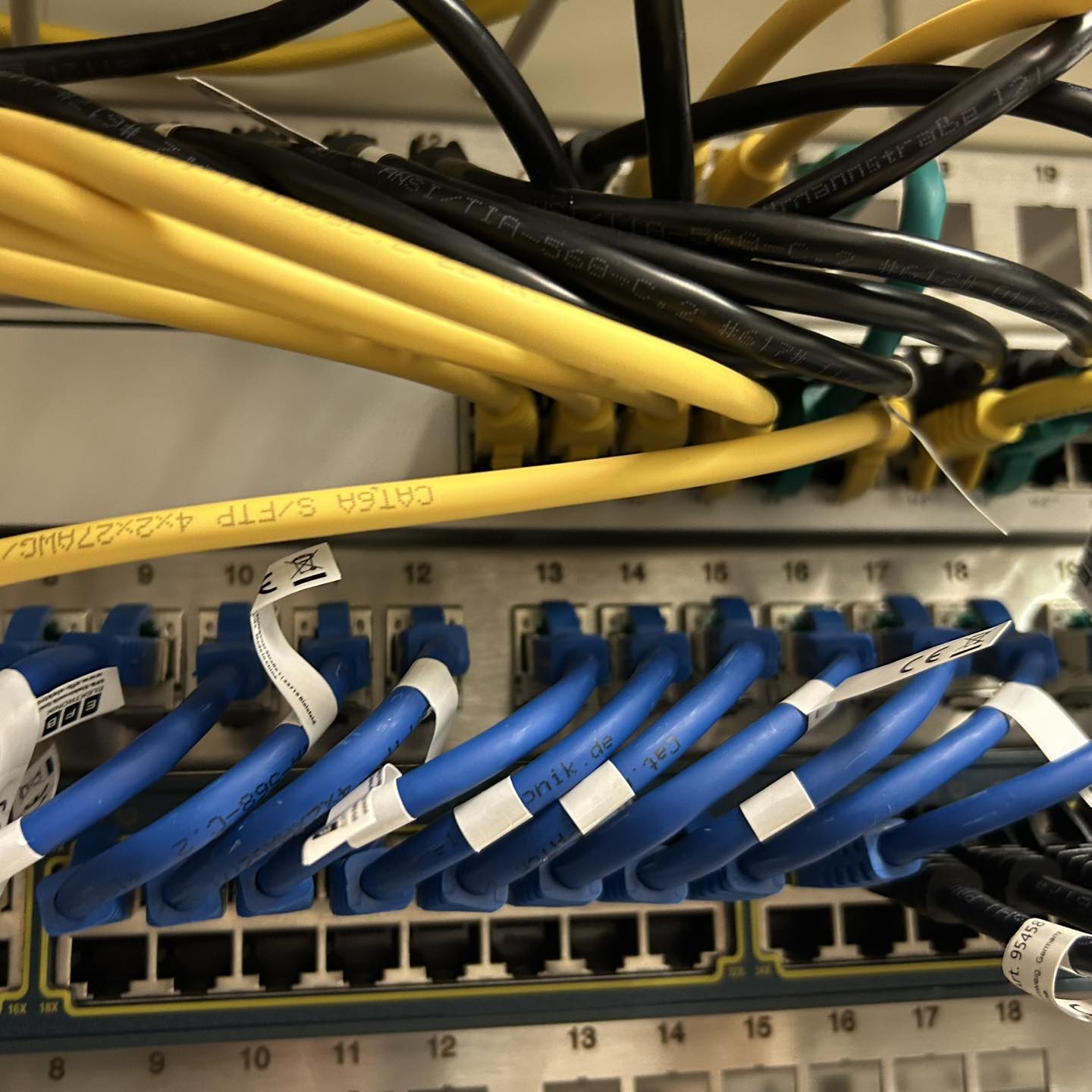 Nun sind auch alle Netzwerkkabel im Serverschrank aufgelegt. Ob alles richtig angeschlossen wurde auch gleich geprüft. Die Netzwerktechnik ist somit komplett fertig eingebaut.