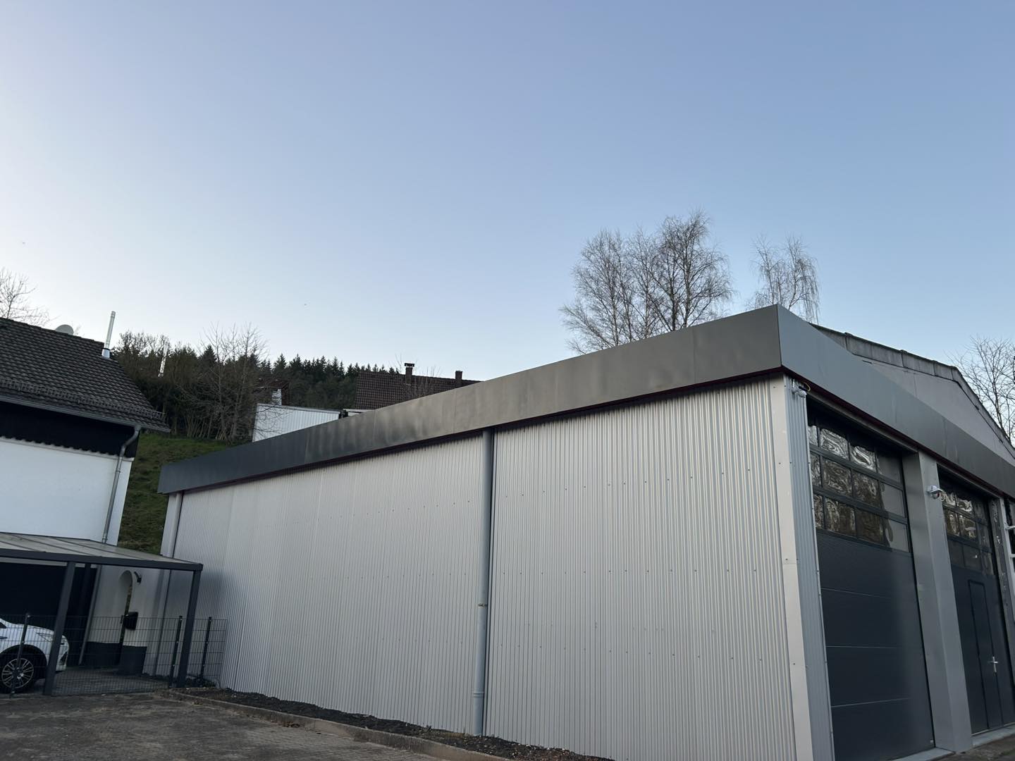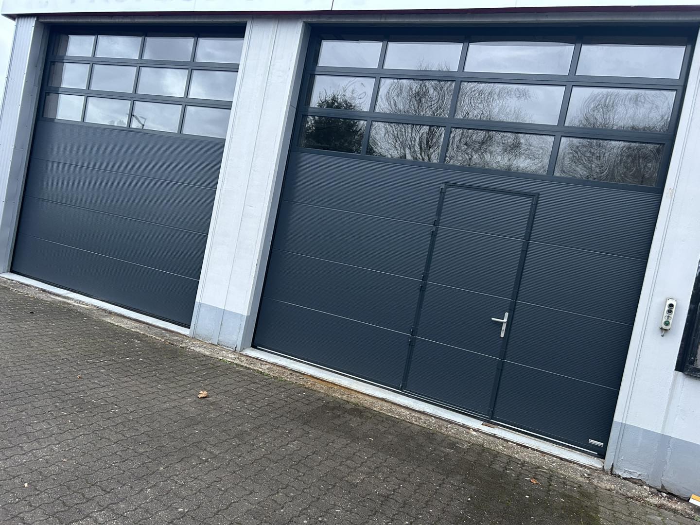 Die alten Hallentore wurden gegen zwei neue Hallentore getauscht. Die beiden 4m x 4m großen Sektionaltore verfügen über einen elektrischen Antrieb mit Fernbedienung. Ein Tor hat zusätzlich eine Schlupftür.